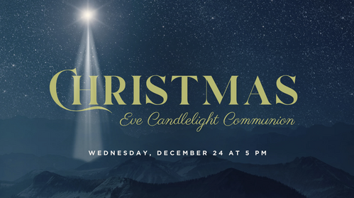 Wednesday, December 24 | We will observe our annual Christmas Eve Candlelight Communion service at 5 PM. This is always a beautiful time of worship as our church family honors the birth of our Savior!